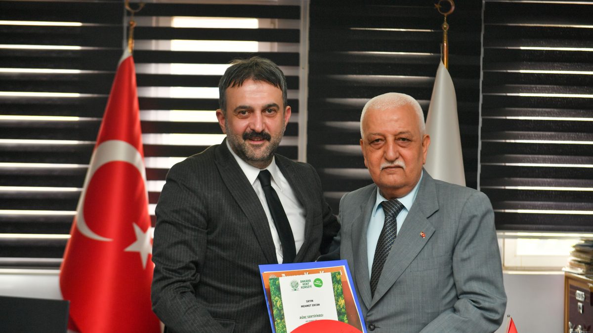 18/04/2026Ankara Kent Konseyi Başkanı Halil İbrahim Yılmaz, Ankara Keresteciler Odası başkanlığına yeniden seçilen Mehmet Ercan’e tebrik ziyaretinde bulundu.