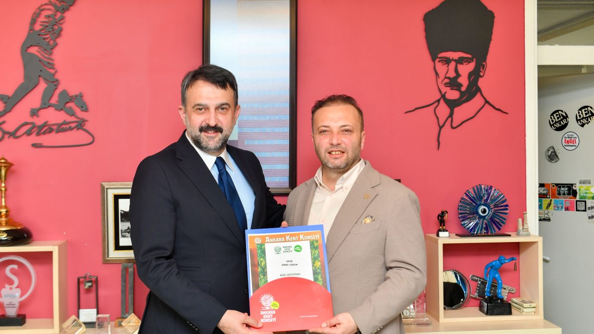 24/04/2026Ankara Kent Konseyi (AKK) Başkanı Halil İbrahim Yılmaz, AKK Başkan Vekili Prof. Dr. Savaş Zafer Şahin, AKK Yüksek İstişare Kurulu Üyesi Sabahat Altınışık, AKK Yürütme Kurulu Üyeleri Cevriye Kaya, Arzu Balkan, Züleyha Özcan, Ankara Ticaret Odası (ATO) Üyelesi Halil İlik, ATO Meclis Üyeleri Cengiz Gökay ve Mücahit Şentürk TMMOB Mimarlar Odası Ankara Şube Başkanı İsmail Coşkun’a hayırlı olsun ziyareti gerçekleştirdi.
