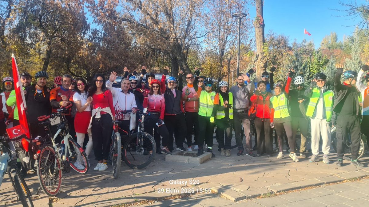 Kurtuluş Parkı’nda bir araya gelen bisikletliler, Kuğulu Park’a kadar yan yana pedallayarak Cumhuriyet coşkusunu sokaklara taşıdı.
