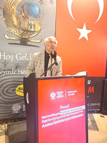 “Bugün konuşmacılarımızın cevap aradığı konu, Türk- Ermeni ilişkilerinin normalleşmesi olacak, özellikle Karabağ Savaşı’ndan sonra Ermenistan’da tutum değişikliği gözleniyor. Azerbaycan’da kalıcı kalıcı barışın tesis edilmesi, Türkiye ile ilişkilerin normalleştirilmesi ve Ermenistan’ın bölgesel ekonomik entegrasyonunu öngören politikalar izleniyor. Ermenistan’da önümüzdeki Haziran başında yapılacak seçimlerde Ermeni halkından onay alınırsa, bizim asılsız Ermeni iddiaları konusundaki faaliyetlerimizde güçlenecek nitelikte ve aynı zamanda Diaspora’nın faaliyetleri de boşa düşürecek niteliktedir.”