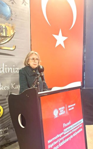 -Büyükelçi Numan Hazar ise; “Türk-Ermeni İlişkiler, Gerçekler ve Engeller” başlıklı konuşmasında Anadolu’da, özellikle Doğu ve Güney Anadolu’da yaşanan Türklere yönelik saldırılara ve mücadeleye yer verdiği konuşmasında, dönemin siyasi kanadını da ele alarak, halkın verdiği mücadeleyi, ayrıca yaşanan savaşlarda ve antlaşmalarda Türkiye-Ermenistan ilişkilerinde dönüm noktası olan süreçlere değindi.