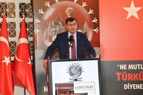 Ankara’yı kültürün ve sanatın da başkenti yapmak için çalışmalarını sürdürdüklerini belirten Ankara Kent Konseyi Başkanı Halil İbrahim Yılmaz, “ Burada sadece bir sergi açılışında değil, 85 yıllık köklü bir hikâyenin ve Milli Mücadele’nin kalbi olan iki kadim şehrin kucaklaşmasında bir aradayız. Bu sergi, Ankara’nın ve Kütahya’nın ortak tarihine tutulan bir aynadır. Birinci Meclis’ten Sakarya’ya, Kocatepe’den Dumlupınar’a ve Kütahya üzerinden İzmir’e uzanan o şanlı yolculuk olmasaydı; bugün ne 5 bin yıllık Türk tarihinin somut ve soyut değerlerinden bahsedebilir, ne de vatanımızın ruhunu sanatla, camiyle, mabedle anlatabilirdik” ifadesini kullandı. Sanatın herkesin ortak olduğunu vurgulayan AKK Başkanı Yılmaz konuşmasına şu şekilde devam etti: “ Sanat bizim için sadece bir hobi değil; devlet-millet el ele, her türlü ayrımcılığı bir kenara bırakarak oluşturduğumuz ortak bir iklimdir. Eğer bu sanat iklimini kreatif sektörlerle buluşturup gelecek kuşaklara bir ilham hikâyesi olarak aktaramazsak, Adil Hocam gibi değerlerimizi yüzyıllar boyu yaşatamazsak, hikâyesi yarım kalmış bir toplum oluruz.Ekonomi sadece üretim ve ithalat rakamlarından ibaret değildir. Bizler, coğrafi işaretli ürünlerimizde, çinimizde, mobilyamızda ve sanatımızda rekabet üstünlüğümüzü ortaya koymak zorundayız. Ancak sanatın ışığıyla genç işsizliği azaltabilir ve dünya üzerindeki hakimiyetimizi perçinleyebiliriz. Şuna yürekten inanıyorum ki; sanatın ışığı her türlü ışıktan daha parlaktır ve türküleri yakanlar, kanunları yapanlardan her zaman daha güçlüdür. Bu sergideki eserler sadece çini veya boya değil; bu toprağın asırlık sevdasının, savaşının, barışının ve doğasının birer özetidir.”