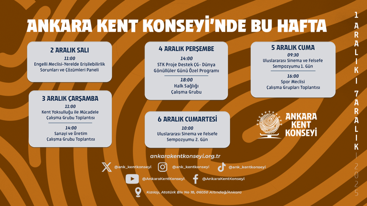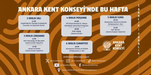 01/12/2025Ankara Kent Konseyi Haftalık Programı (1-7 Aralık 2025)