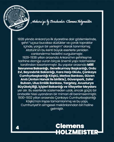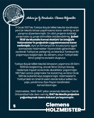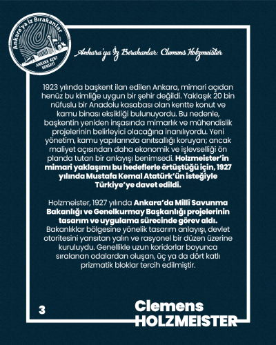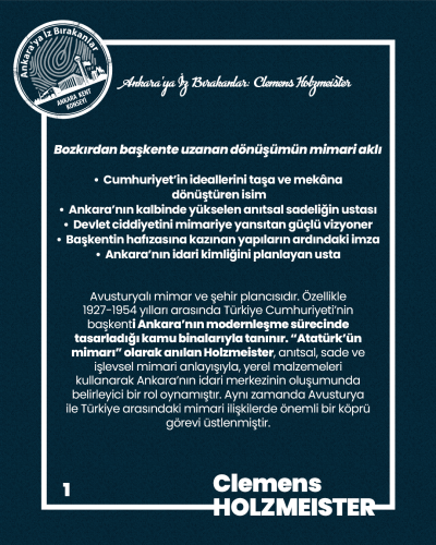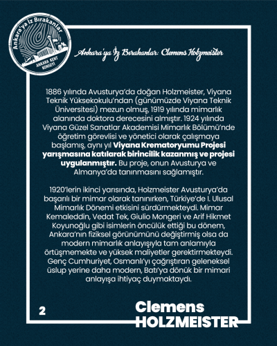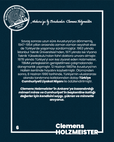 Clemens Holzmeister’in Ankara’ya kazandırdığı mimari miras ve Cumhuriyet’in başkentine kattığı değerler için kendisini saygı, şükran ve minnetle anıyoruz.