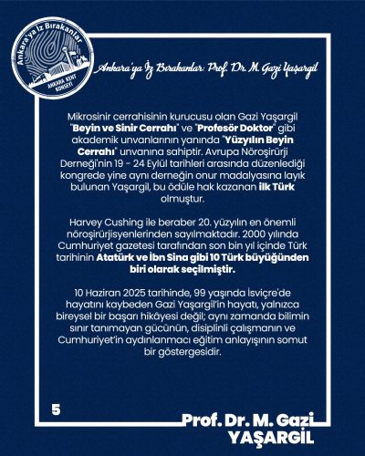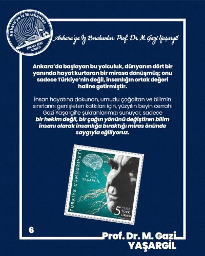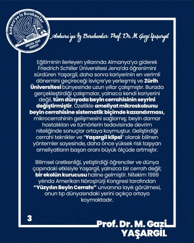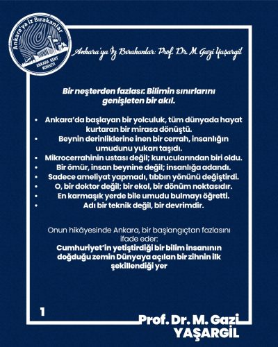 İnsan hayatına dokunan, umudu çoğaltan ve bilimin sınırlarını genişleten katkıları için, yüzyılın beyin cerrahı Gazi Yaşargil’e şükranlarımızı sunuyor, sadece bir hekim değil, bir çağın yönünü değiştiren bilim insanı olarak insanlığa bıraktığı miras önünde saygıyla eğiliyoruz.