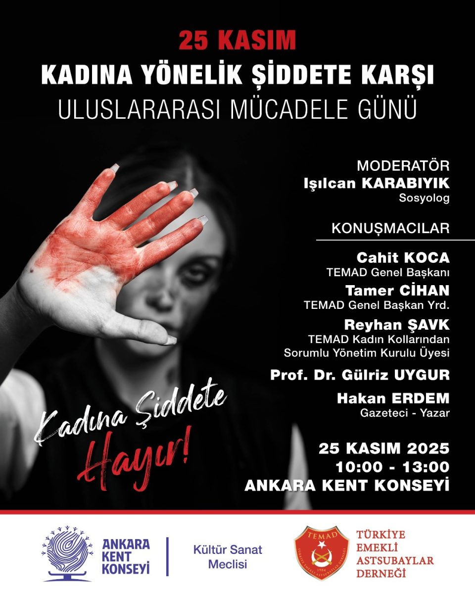 24/11/2025AKK Kültür Sanat Meclisi ve Türkiye Emekli Astsubaylar Derneği iş birliğiyle, 25 Kasım Kadına Yönelik Şiddete Karşı Uluslararası Mücadele Günü kapsamında düzenlenen farkındalık etkinliği; kadına yönelik şiddete dikkat çekmeyi, toplumsal bilinç oluşturmayı ve mücadele yollarını ele almayı amaçlarken, alanında uzman isimlerin psikolojik, sosyolojik ve hukuki boyutlara ilişkin değerlendirmelerine de yer verecek.