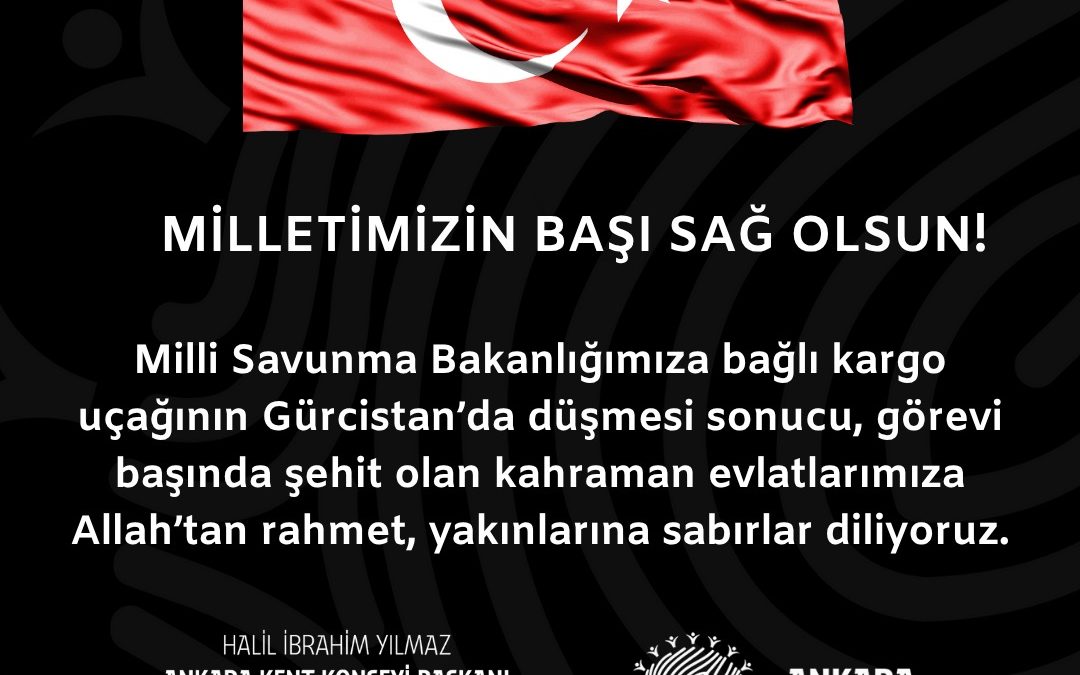 Milli Savunma Bakanlığımıza bağlı kargo uçağının Gürcistan’da düşmesi sonucu, görevi başında şehit olan kahraman evlatlarımıza Allah’tan rahmet, yakınlarına sabırlar diliyoruz.