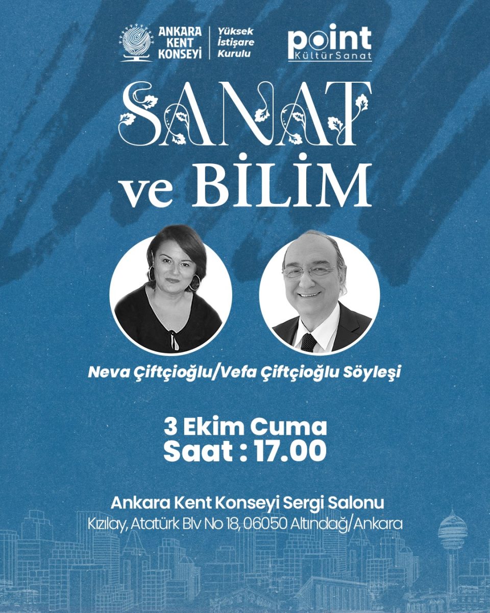 Ankara Kent Konseyi Yüksek İstişare Kurulu ve Point Kültür Sanat iş birliğiyle düzenlenen “Sanat ve Bilim” söyleşisinde, iki farklı disiplinin bir araya geldiği özel bir buluşma gerçekleşiyor.