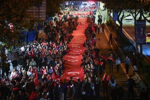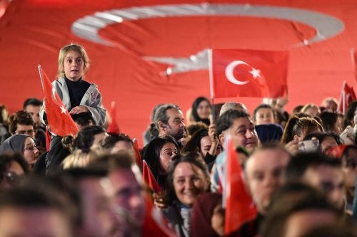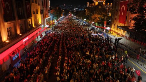Mareşal Atatürk Anıtı’ndan Birinci Meclis’e kadar meşalelerle yürüyen vatandaşlar, ellerinde Türk bayraklarıyla Cumhuriyet marşlarını hep bir ağızdan söyledi.